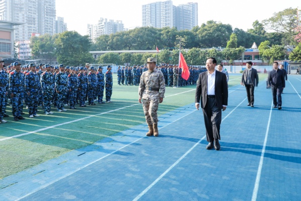 校領(lǐng)導(dǎo)看望慰問(wèn)軍訓(xùn)參訓(xùn)學(xué)生、教官和指導(dǎo)員